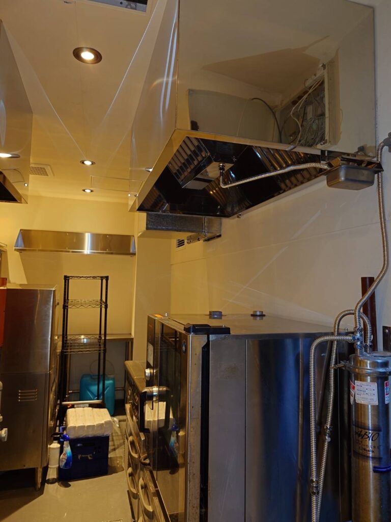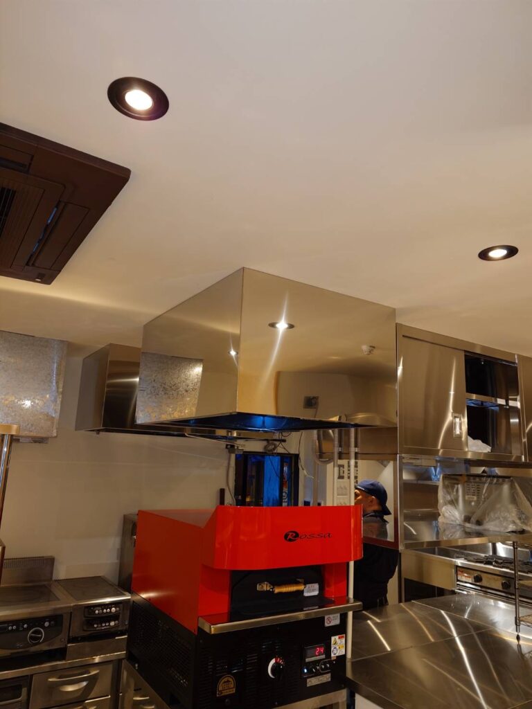 本日の施工事例はイタリアンのお店での厨房フード3台施工取り付け。